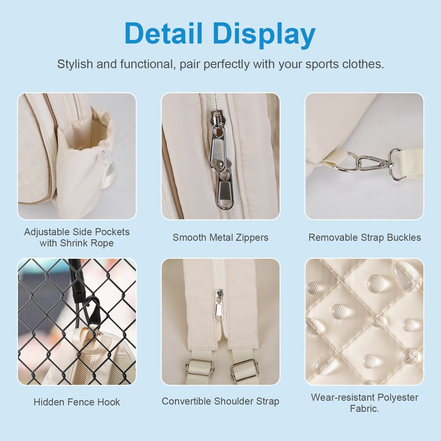 - *3 Carrying Styles*: The straps has a smooth zipper and 2 removable buckles. You can carry pickleball paddle bag as a left/right sling bag,backpack or carry it with the handle. The hidden fence hook lets you hang the bag on fences,offering easy gear access and ground protection. Stylish and functional,this bag pairs perfectly with your sports clothes.